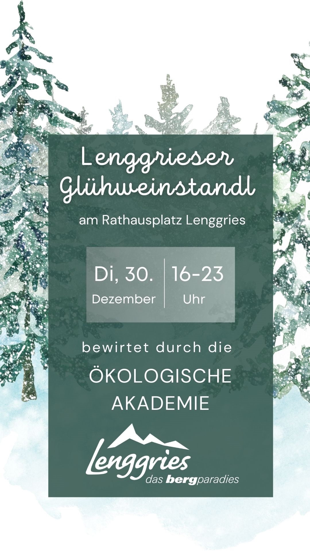 Auch dieses Jahr bewirtet die Ökologische Akademie wieder den Glühweinstand am Rathaus in Lenggries, am Dienstag, 30.12.25 von 16-23 Uhr.